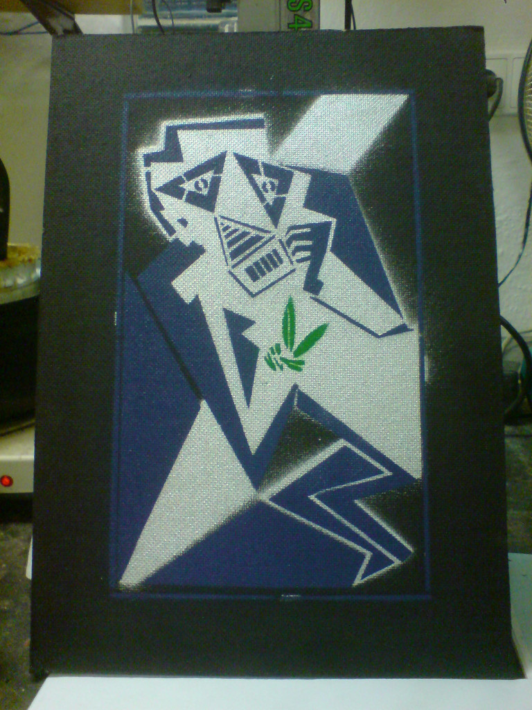 Improvizace s metalickými, fluorescenčními barvami a šablona.