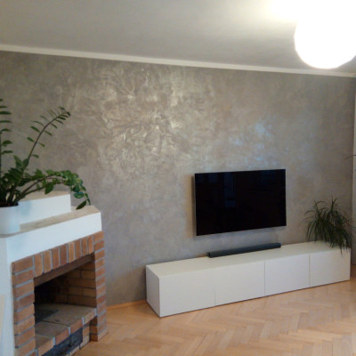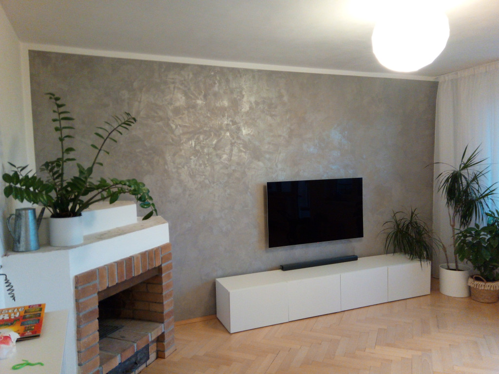 perleťová - metalickáúprava zdi v obývacím pokoji