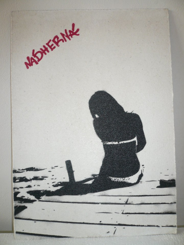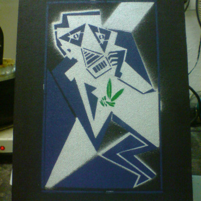 Improvizace s metalickými, fluorescenčními barvami a šablona.